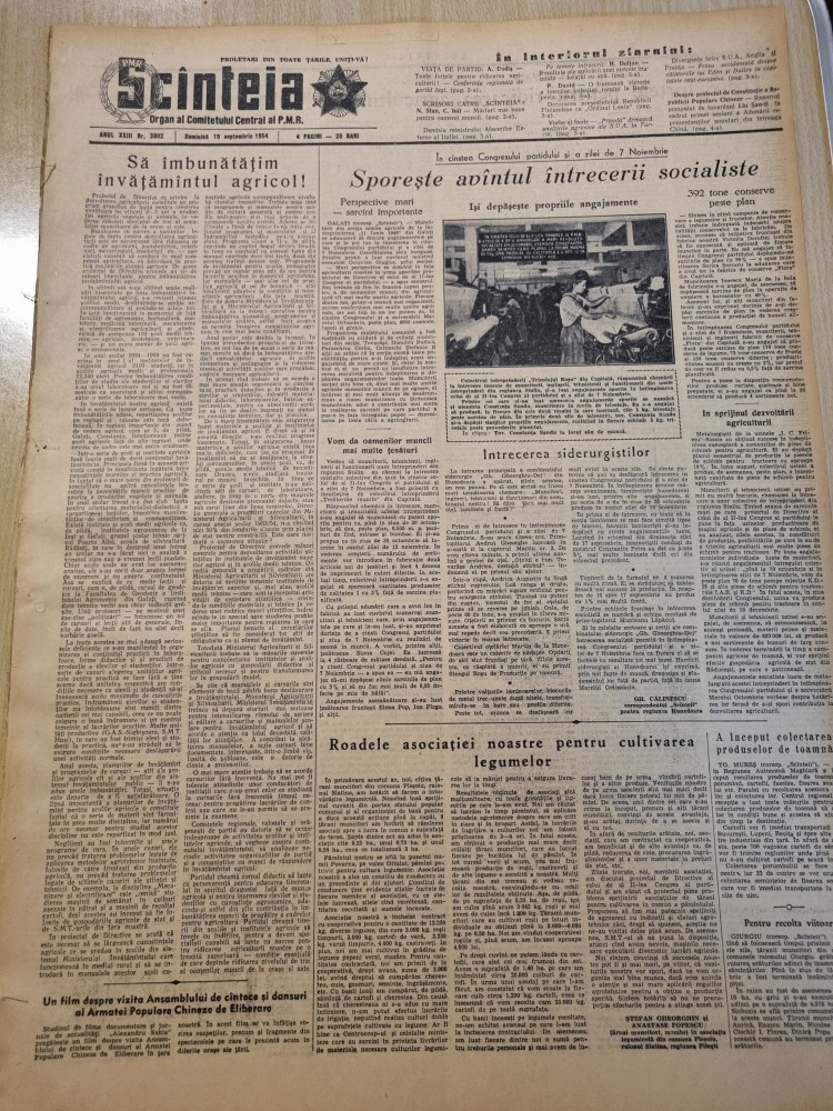 scanteia 19 septembrie 1954-art. conferinta de partid iasi,com.plesoiu slatina,