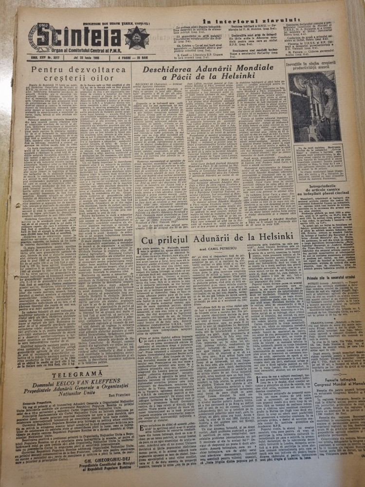 scanteia 23 iunie 1955-art. calarasi,adunarea mondiala de pace de la helsinki