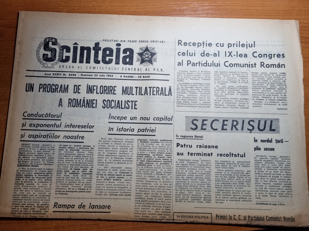 scanteia 25 iulie 1965-congresul al 9-lea,ceausescu a devenit conducatorul tarii