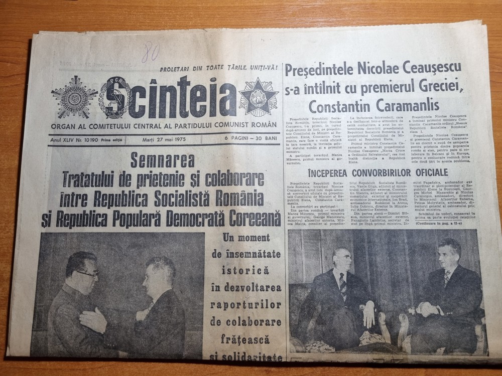 scanteia 27 mai 1975-presedintele republicii coreea kim ir sen in romania