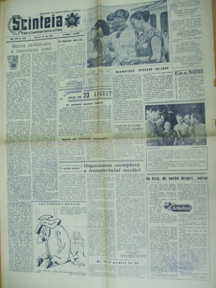 SUMAR : 5 ANI DE TERMOCENTRALA DOICESTI. TREIERISUL TREBUIE GRABIT TARGU MURES. GALATI MARELE SANTIER LAMINOR. MINERII DIN COMANESTI. CARICATURA EUGEN TARU LIRA STERLINA. C.F.R. TRANSPORTUL RECOLTEI.