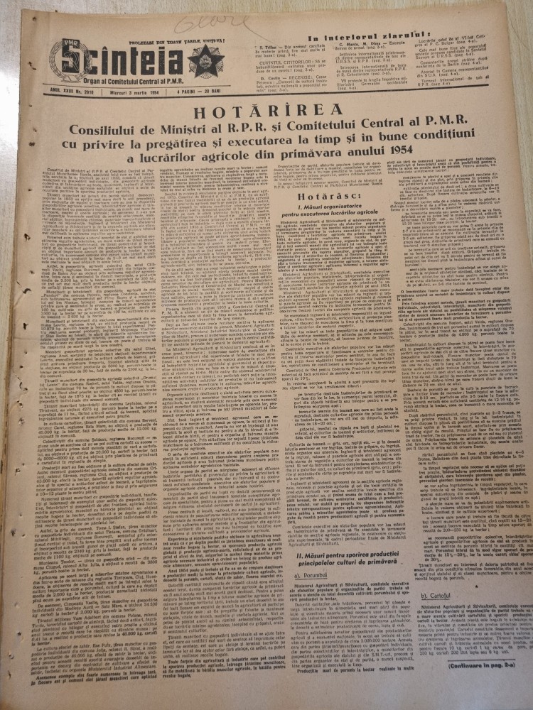 scanteia 3 martie 1954-art.cezar petrescu,sacuieni oradea
