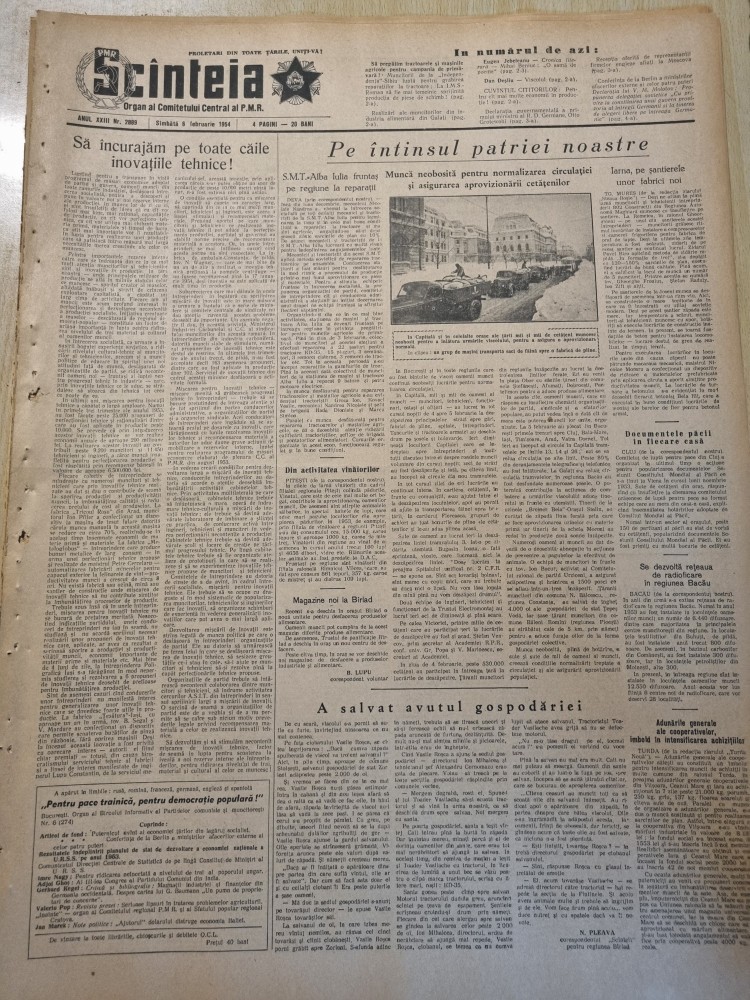 scanteia 6 februarie 1954-art. viscolul din romania,magazine noi la barlad,turda