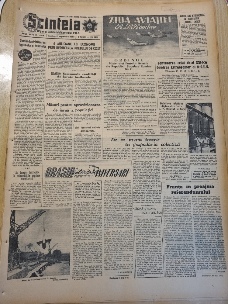 scanteia 7 septembrie 1958-art. turnu severin,ziua aviatiei,satul solonet iasi