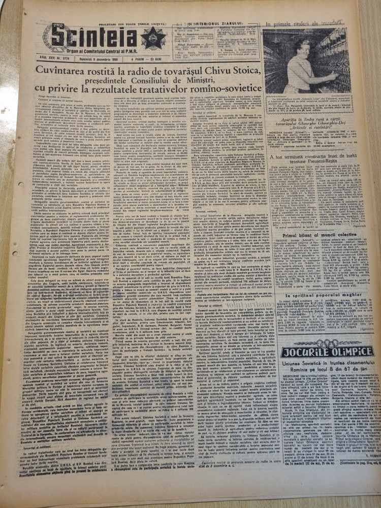 scanteia 9 decembrie 1956-jocurile olimpice melbourne,art. sebes,cluj,timisoara