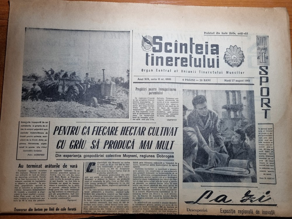 scanteia tineretului 27 august 1963-art. regiunea arges,timisoara ,deva,galati