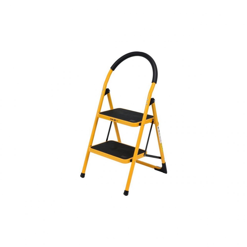 Scara are 2 trepte cu dimensiunea de 36x26 cm , care au suplimentar tampoane antiderapante. Datorită acestui fapt, vă permite să stați ferm și stabil pe el, fără teama de a aluneca sau de a vă împiedica. Un suport suplimentar de protecție în partea de sus a scării, cu un capac moale de burete, protejează împotriva căderii și, în același timp, este foarte convenabil de transportat.