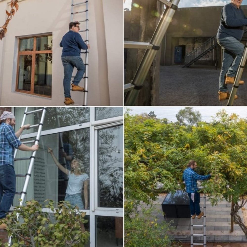 Datorita designului telescopic, scara se pliaza rapid si ocupa foarte putin spatiu la depozitare.