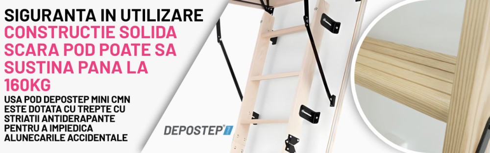 SCARA POD DEPOSTEP COMPACT MINI CMN este recomandata pentru locuinte unde spatiul de montaj este limitat, dar este necesar accesul sigur la pod. Datorita capacitatii de etansare si coeficientului termic redus, aceasta scara contribuie la mentinerea temperaturii optime in incaperi, reducand pierderile de caldura prin tavan.