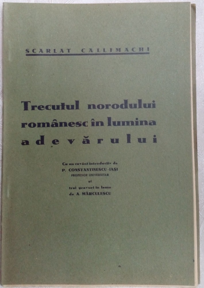 SCARLAT CALLIMACHI - TRECUTUL NORODULUI ROMANESC IN LUMINA ADEVARULUI / BOTOSANI 1935 / CU 3 GRAVURI AUREL MARCULESCU / pref.PETRE CONSTANTINESCU-IASI