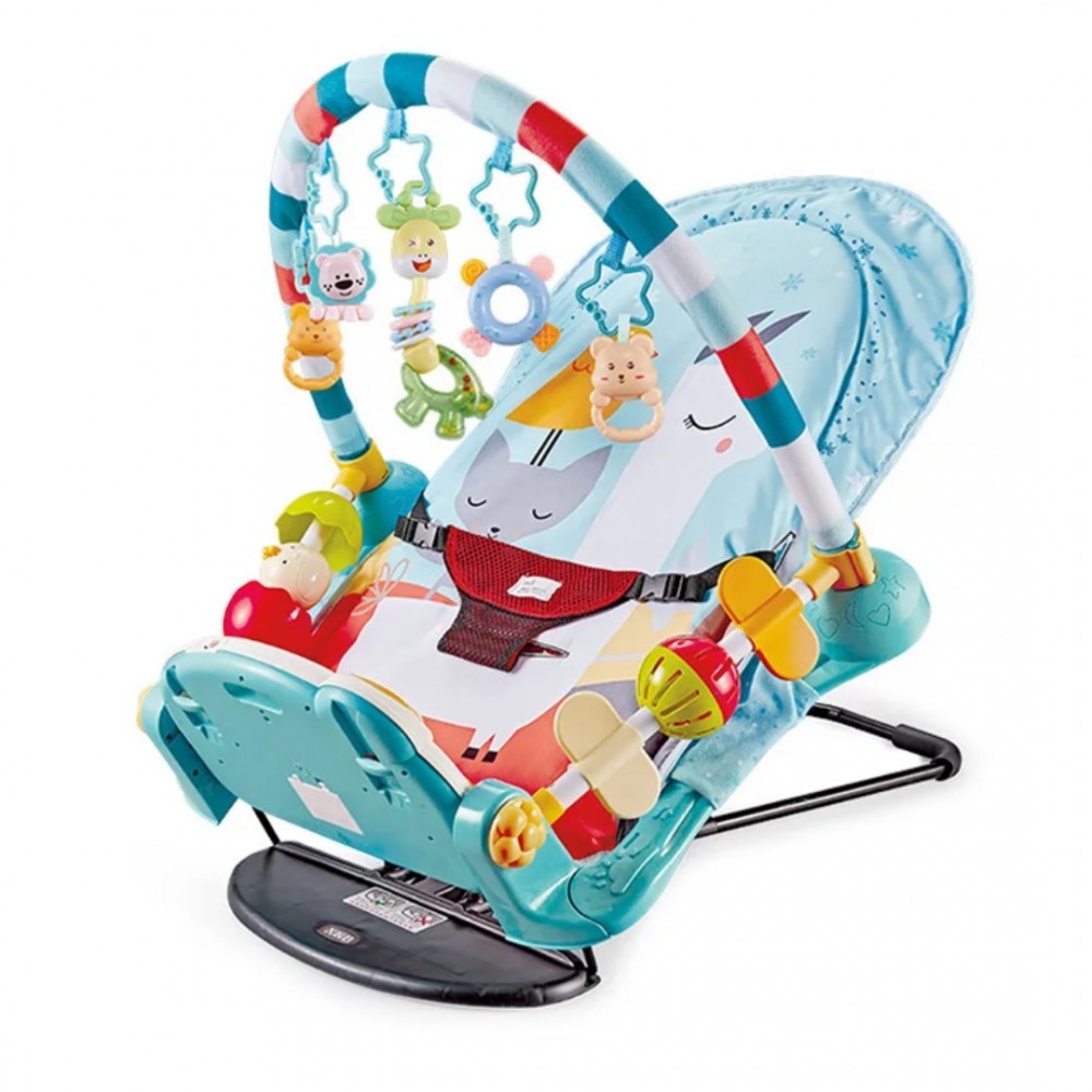 Scaunul balansoar Relax si Saltea de Joacă 2-în-1 este perfect pentru a oferi confort și siguranță bebelușului tău. Această saltea moale și plăcută la atingere permite copilului să se întindă confortabil, în timp ce clapele pianului, poziționate la nivelul picioarelor, emit sunete liniștitoare la fiecare lovitură a bebelușului, menținându-l angajat și fericit pentru ore întregi. Conceput pentru a dezvolta simțurile auditive și vizuale ale copilului, această saltea de joacă oferă exerciții sănătoase pentru dezvoltarea sa armonioasă. Ideală pentru nou-născuți și copii în creștere, fiind un produs 2-în-1 ce combină o saltea de joacă și un leagăn confortabil!