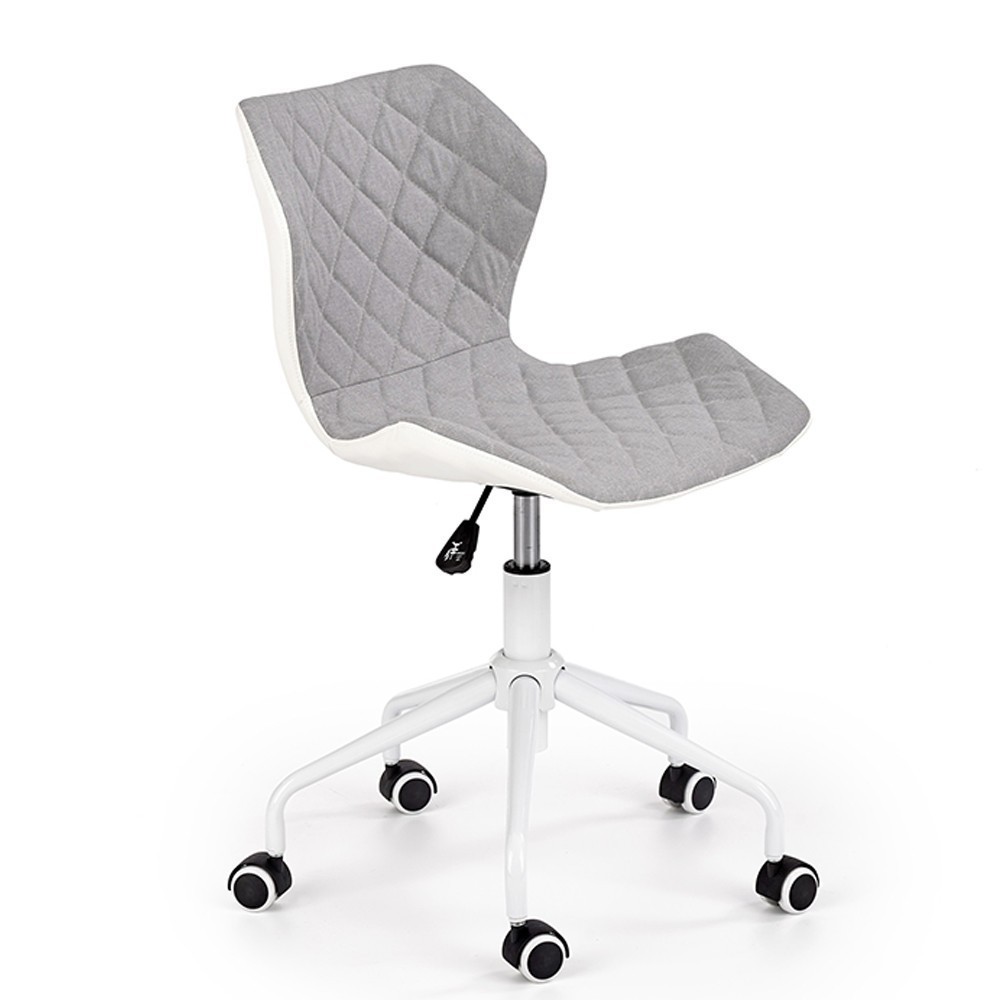Scaun birou copii HM Matrix 3, stofa piele ecologica, inaltime reglabila, rotire 360 , roti pivotante, 100 kg, gri alb