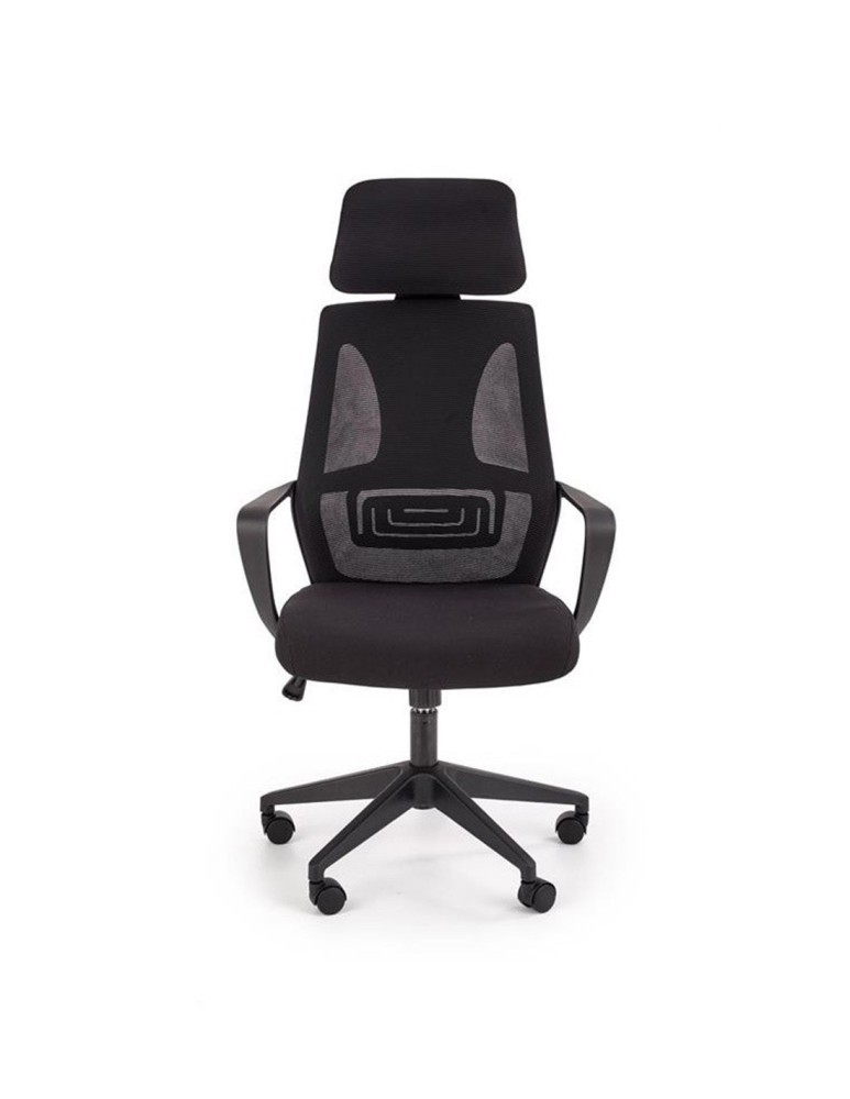 Scaun birou cu mesh HM Valdez, mecanism de balans, cadru polipropilena, suport lombar, tetiera inclusa, 100 kg, negru