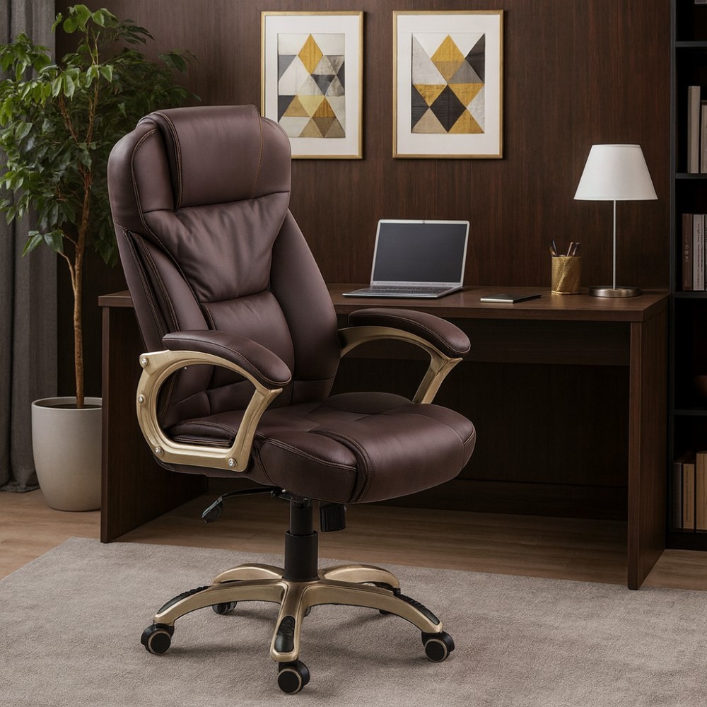 Scaun directorial MH Dante, Cadru Polipropilena, Piele ecologica, Inaltime ajustabila, Mecanism multiblock, Roti cauciucate, 136 Kg, Maro