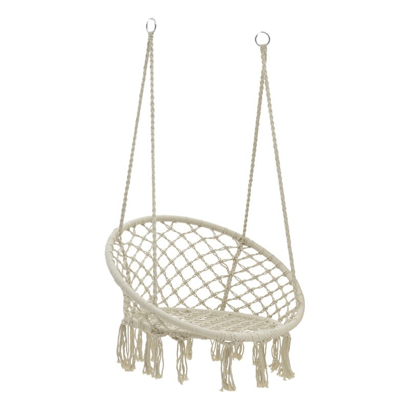 Scaun hamac-leagan Eventful pakoworld rope bej 82x82x133cm Daca sunteti in cautarea unui leagan hamac pentru momente de relaxare si odihna, pe balcon, in gradina sau pe plaja, Eventful este cea mai buna propunere de pe piata.Specificatii:* Patutul este realizat dintr-un cadru metalic de o calitate excelentă, cu rezistență la greutate, uzură și utilizare.* țesut frânghie de o calitate imbatabilă și putere incredibilă* Oferită în culoare bej. * Greutate de rezistență: 80 kg Dimensiuni produs: Lungime: 82 cm Lățime: 82 cm Înălțime: 133 cm Observații: Produsul este livrat asamblat în ambalajul său din fabrică. Nuanța de culoare a produsului poate diferi ușor de reprezentarea sa fotografică pe ecran.