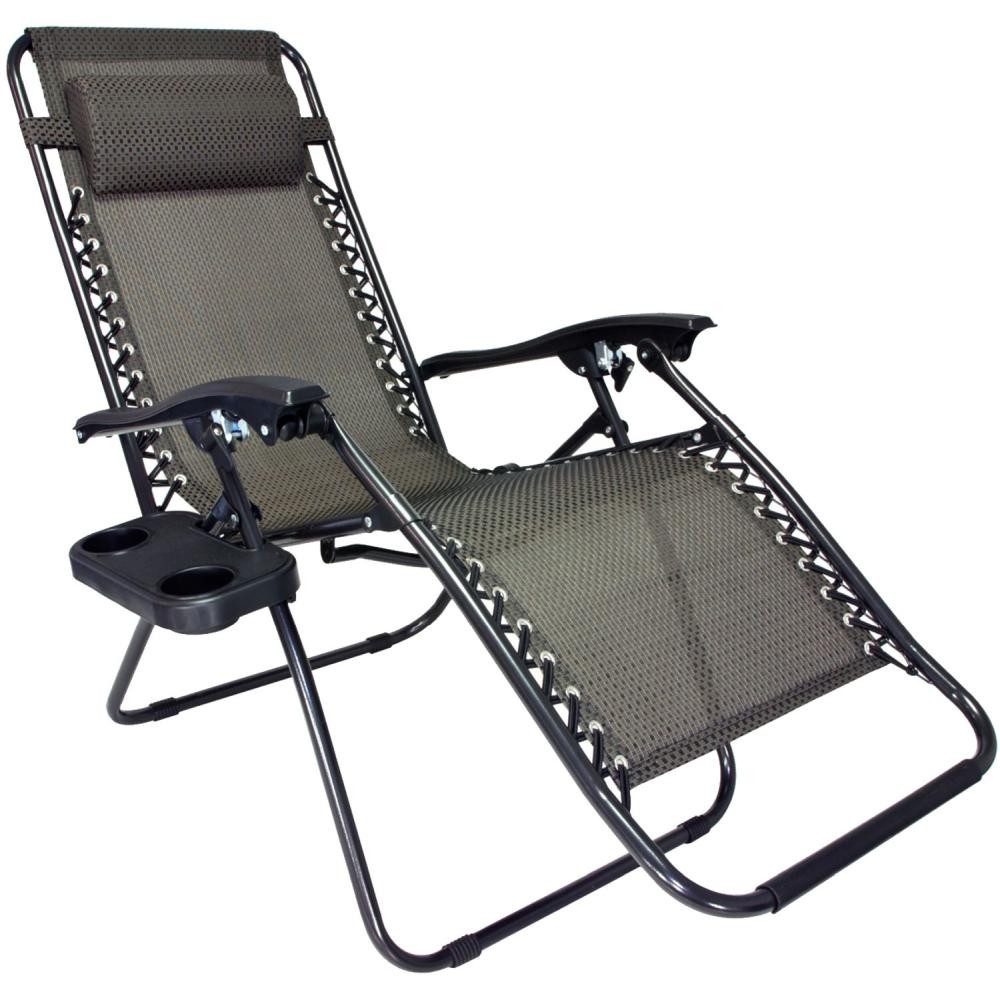 Scaun tip Sezlong Pliabil Gravitatie Zero pentru Terasa, Gradina sau Plaja cu Tetiera si Suport Bauturi, Reglabil, Maro/Negru