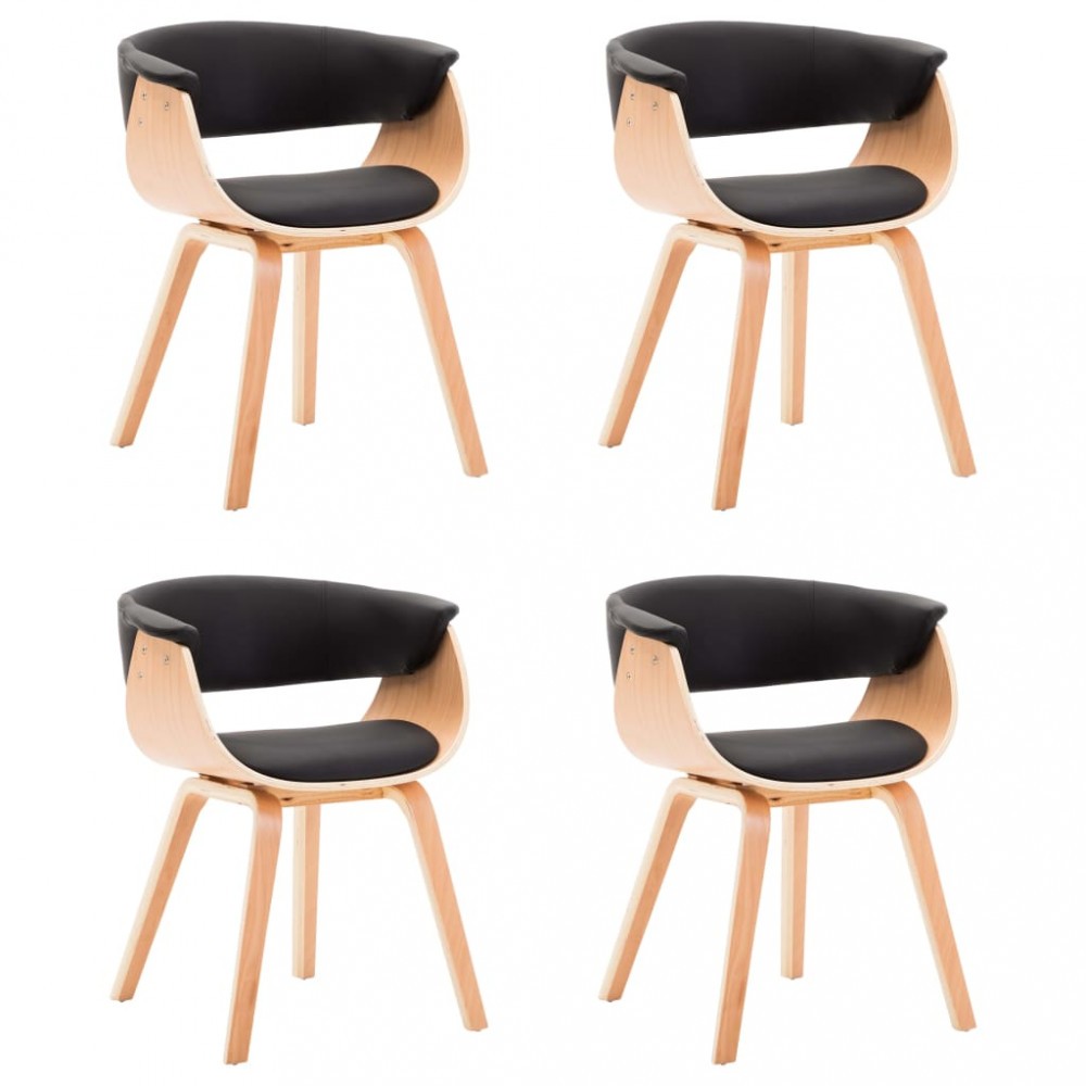 Scaune bucatarie 4 buc, negru, lemn curbat & piele ecologica
