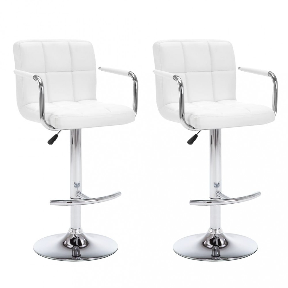Scaune de bar, 2 buc., alb, piele ecologica