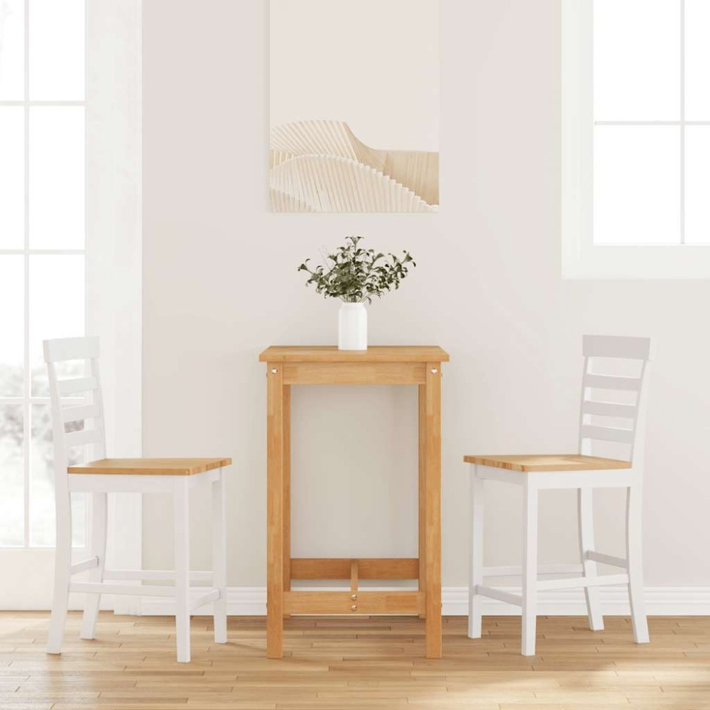 Scaune de bar 2 buc din cauciuc din lemn masiv alb