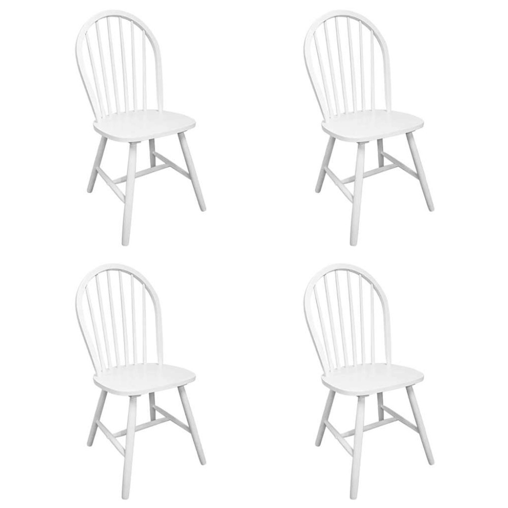 Scaune de bucatarie, 4 buc., alb, lemn masiv de hevea