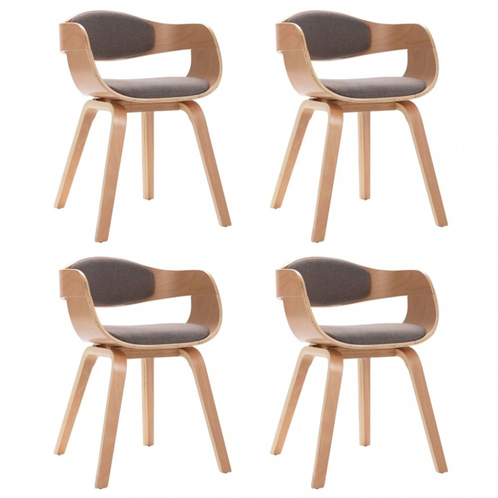 Scaune de bucatarie, 4 buc., gri taupe, lemn curbat si textil