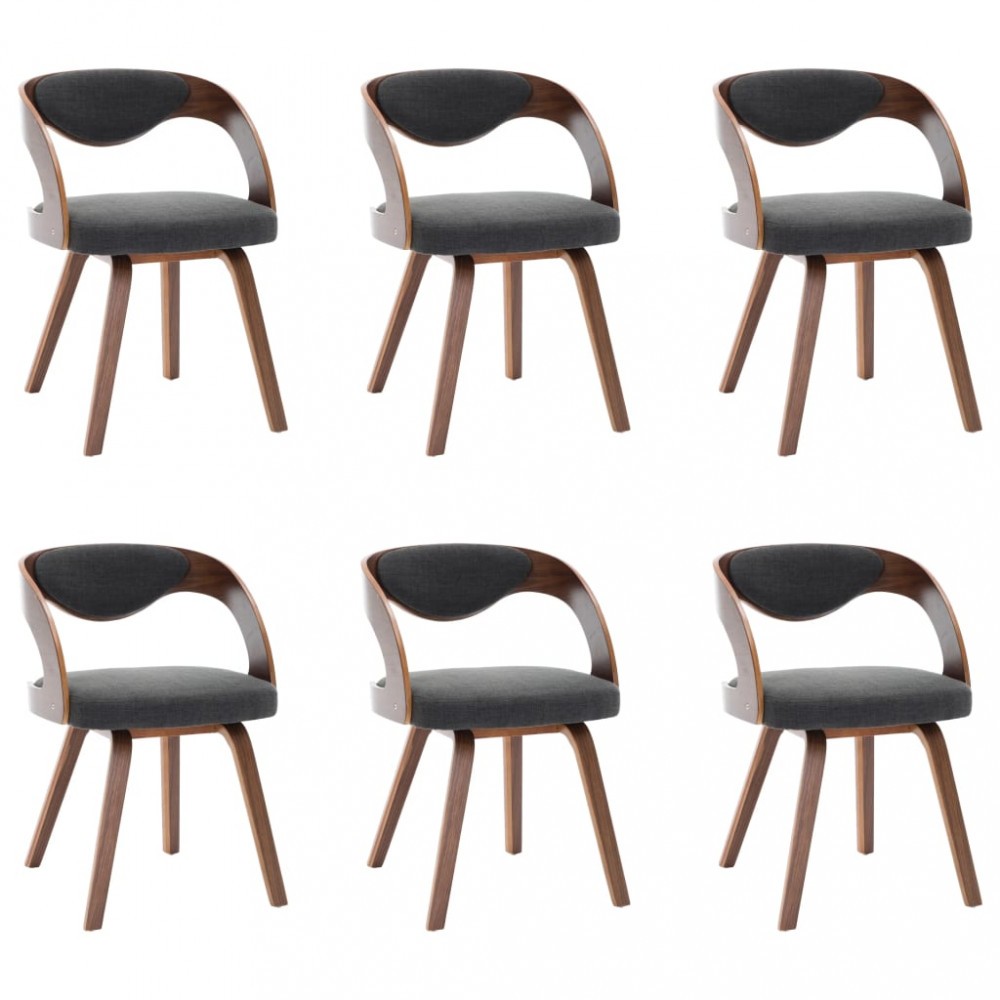 Scaune de bucatarie, 6 buc., gri inchis, lemn curbat & textil