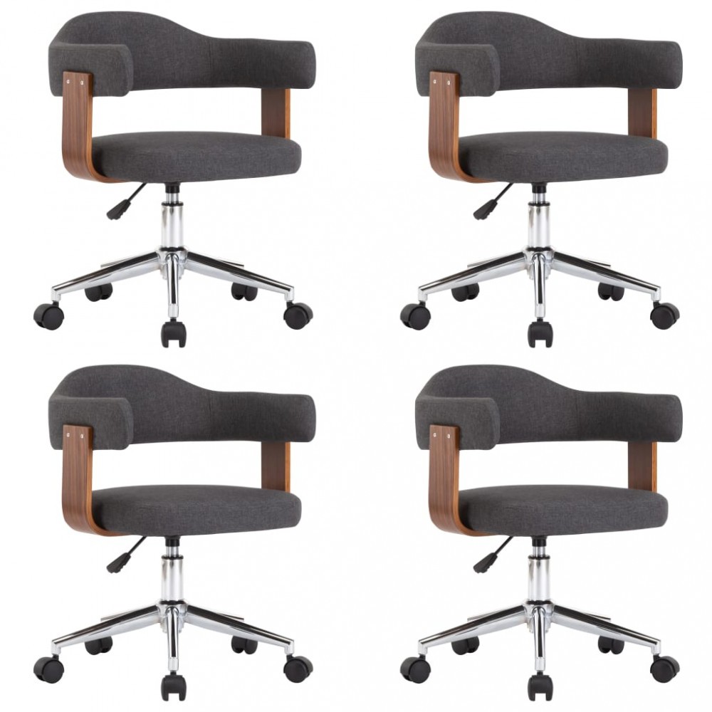 Scaune de bucatarie pivotante, 4 buc, gri, lemn curbat/textil