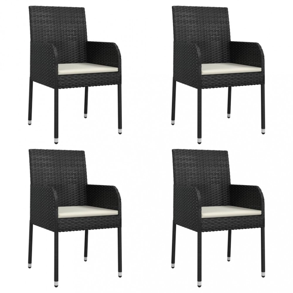 Scaune de gradina cu perne, 4 buc., negru, poliratan