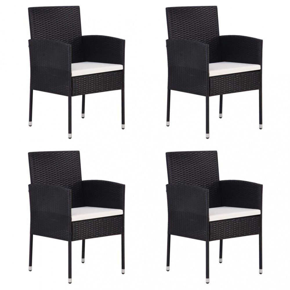 Scaune de gradina cu perne, alb crem, 4 buc., negru, poliratan