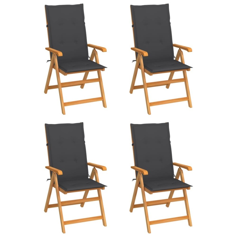 Scaune de gradina cu perne antracit, 4 buc., lemn masiv de tec