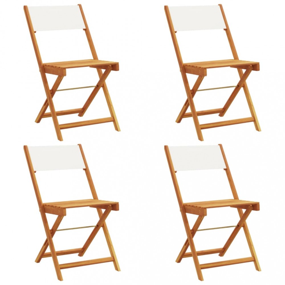 Scaune de gradina pliabile 4 buc., textil alb crem/lemn masiv