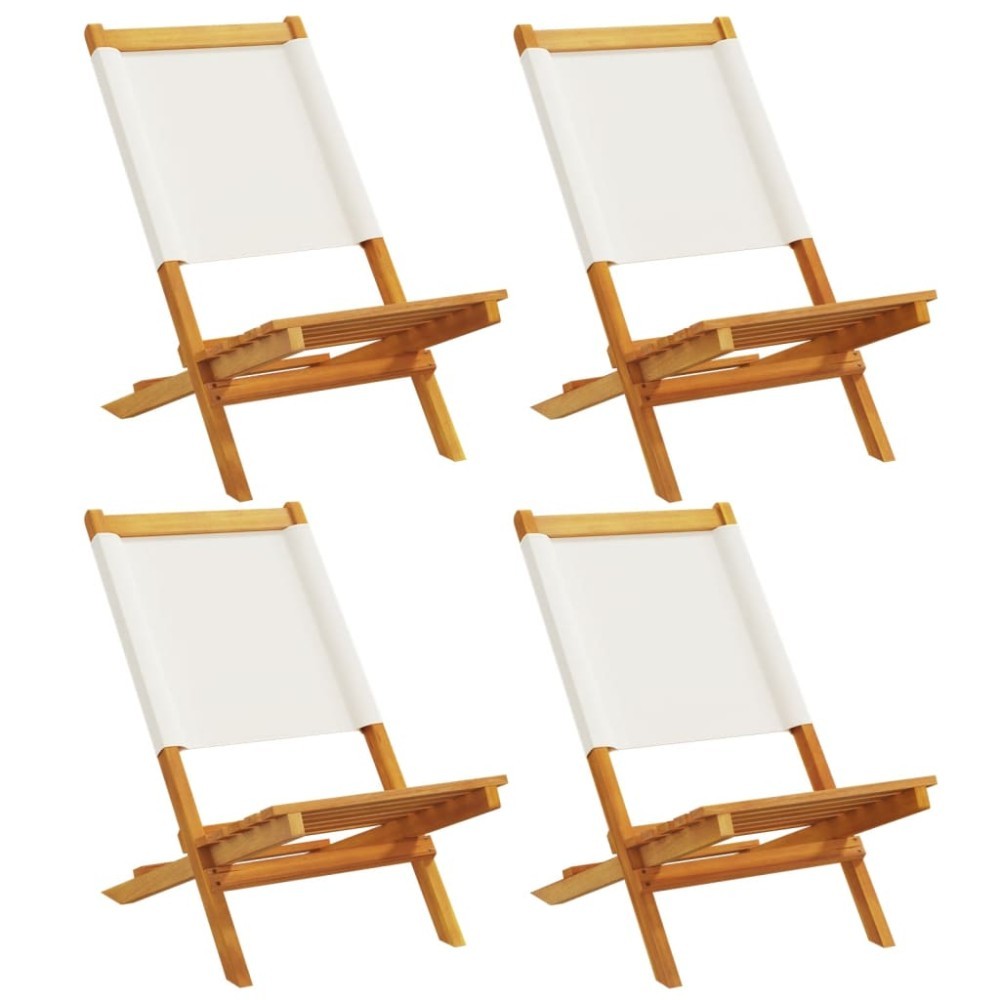 Scaune de gradina pliabile 4 buc., textil alb crem/lemn masiv