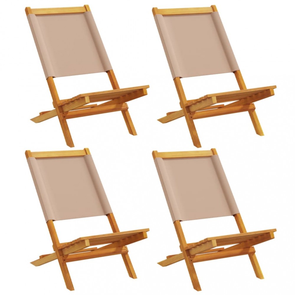 Scaune de gradina pliabile 4 buc., textil taupe/lemn masiv