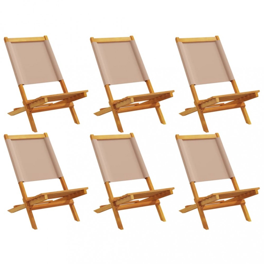 Scaune de gradina pliabile 6 buc., textil taupe/lemn masiv