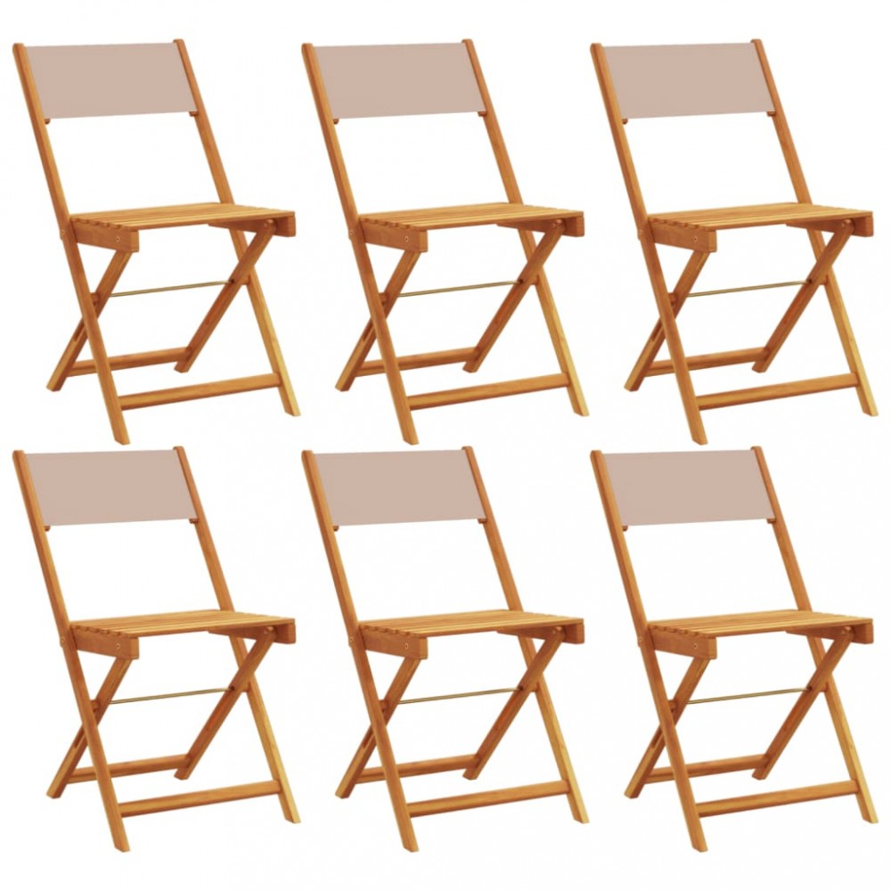 Scaune de gradina pliabile 6 buc., textil taupe/lemn masiv