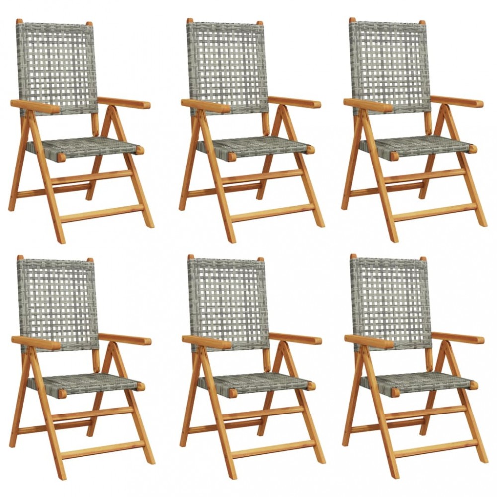 Scaune de gradina rabatabile 6 buc. gri, poliratan/lemn masiv