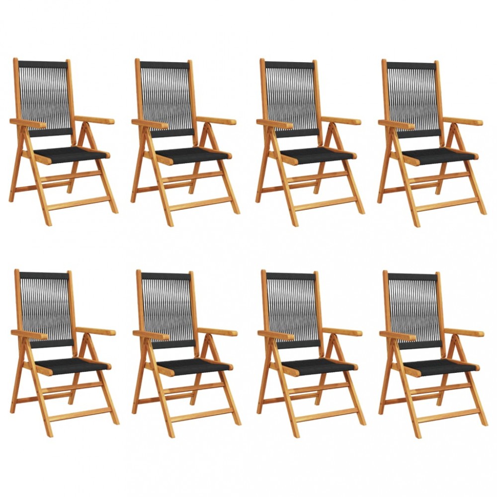 Scaune de gradina rabatabile, 8 buc., negru, lemn masiv acacia