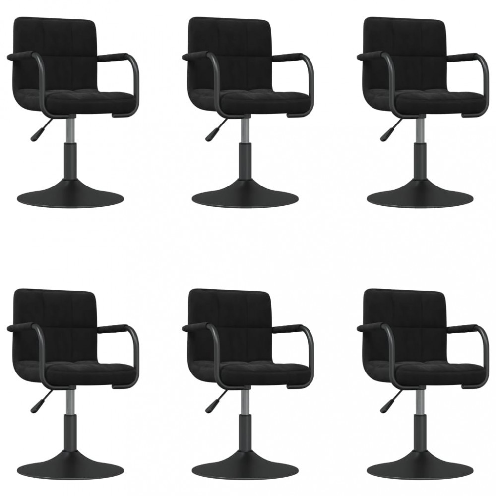 Scaune de sufragerie pivotante 6 buc, negru, catifea