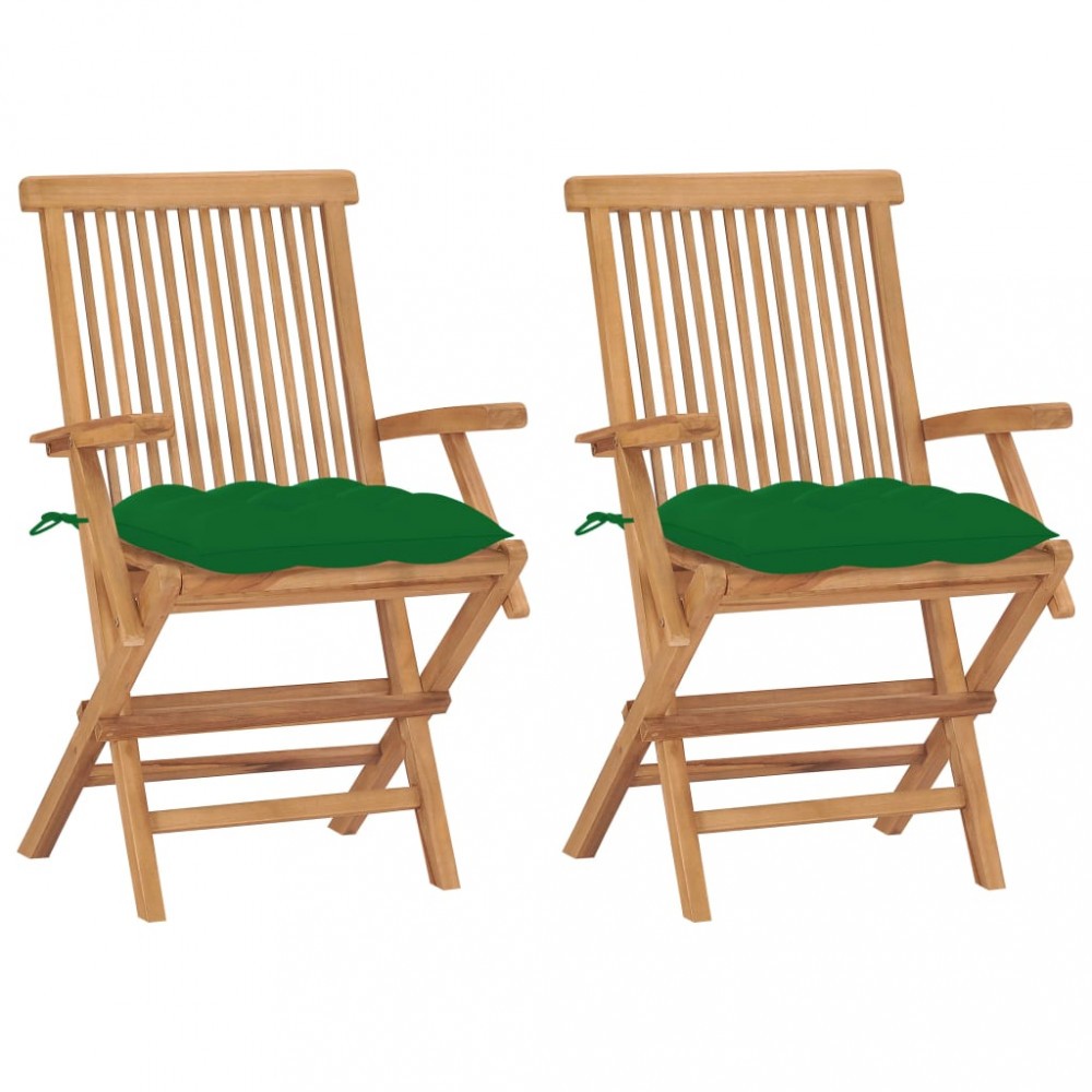 Scaune gradina cu perne, 2 buc., verde, lemn masiv tec