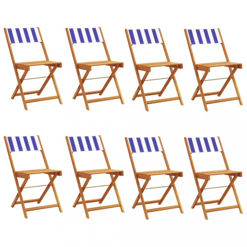 Scaune gradina pliabile 8 buc., textil albastru alb/lemn masiv