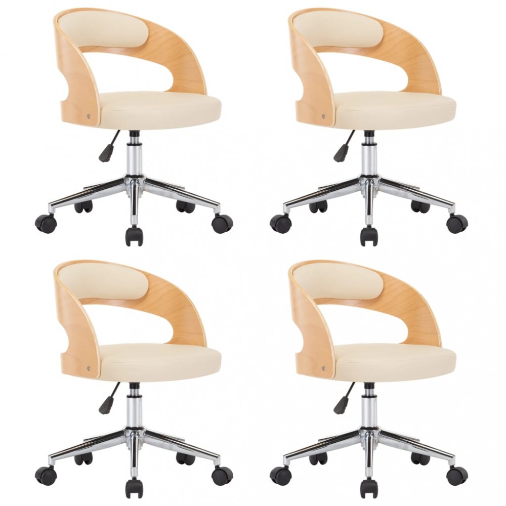 Scaune pivotante, 4 buc. crem, lemn curbat & piele ecologica