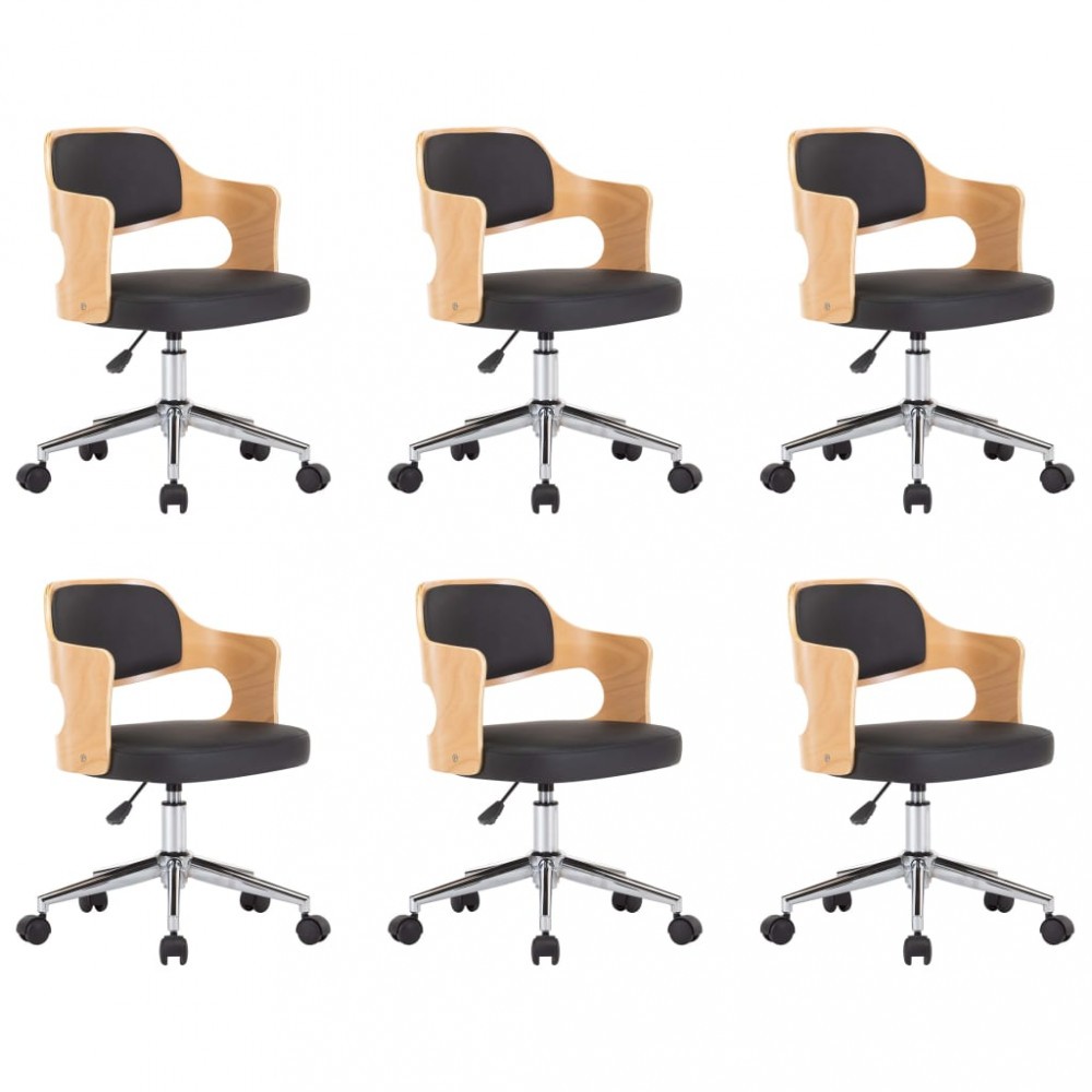 Scaune pivotante, 6 buc. negru, lemn curbat & piele ecologica