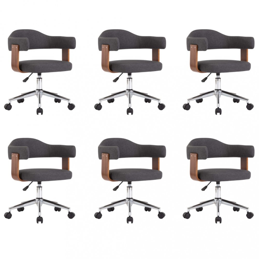 Scaune pivotante de masa, 6 buc., gri, lemn curbat si textil