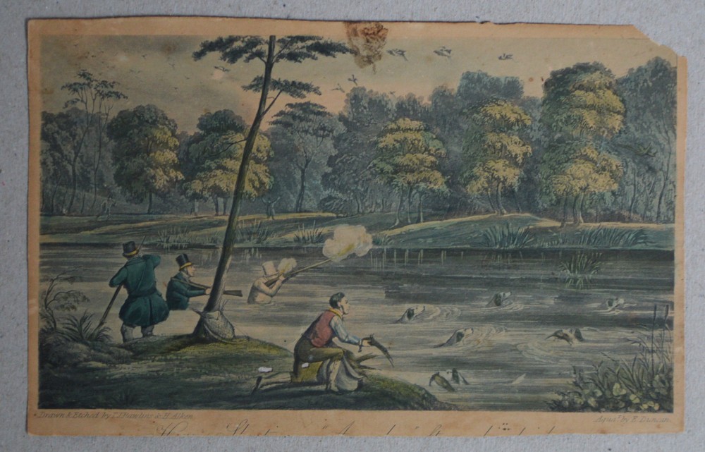 Scena de vanatoare aquatinta. Desenat si gravat de TJ Rawlins, H. Alken,
