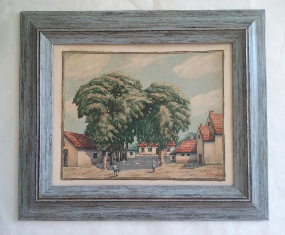 Acuarela, semnata dreapta jos (semnatura ilizibila) – lucrare in stare buna, prezentata in rama de 28.5 x 33.5 cm. Compozitie delicata, executata cu tusa sigura si tonuri estompate, specifice lucrarilor de epoca.