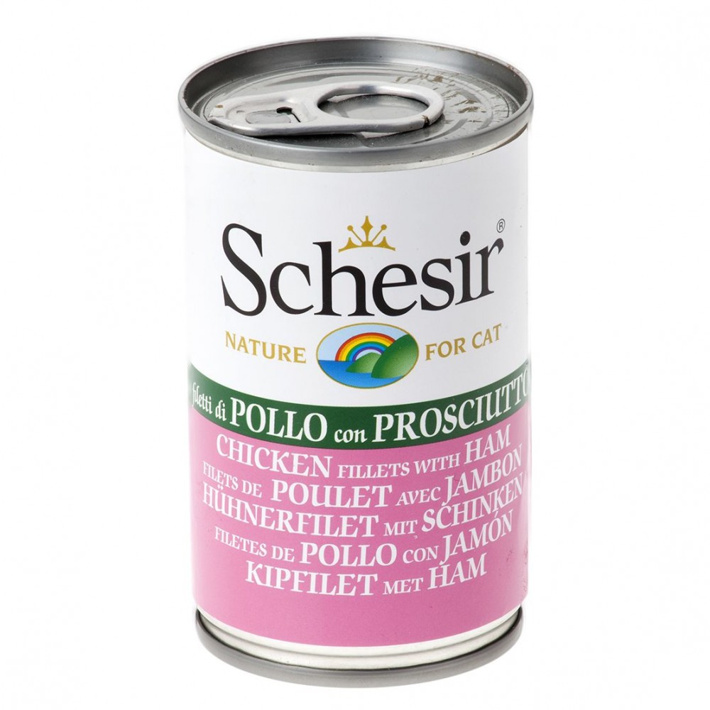 - conservele Schesir sunt caracterizate prin gustul și aroma extraordinare, bucăți întregi de carne fără oase, piele sau măruntaie