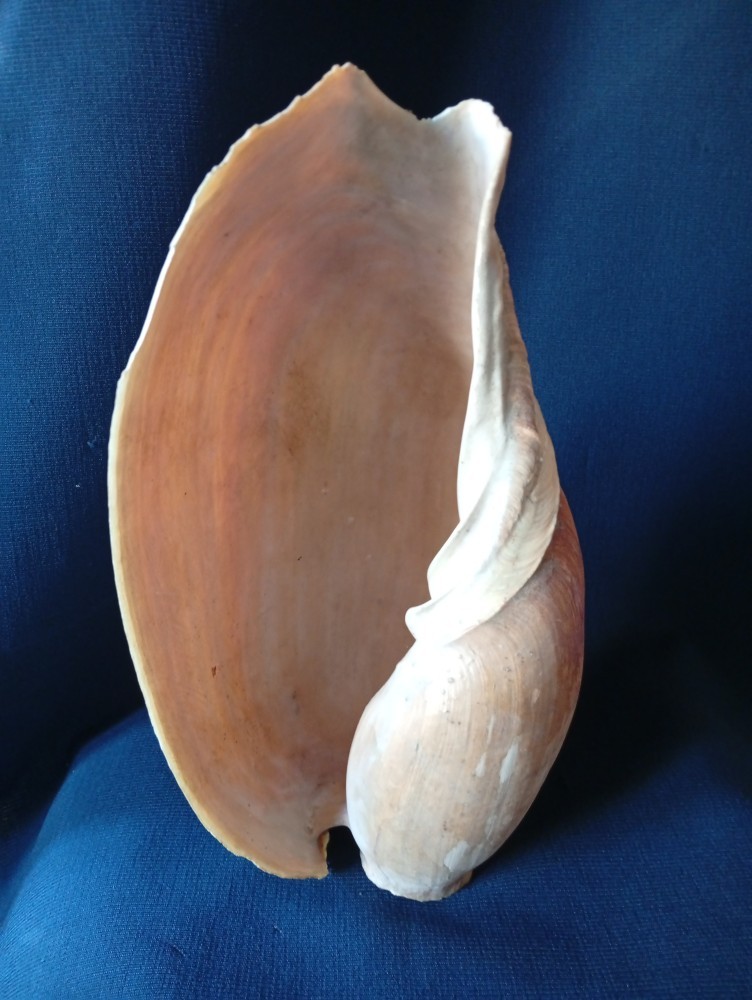 O scoică uriașă, cu lungimea de 30 cm. și lățimea de 17 cm., în stare foarte bună.