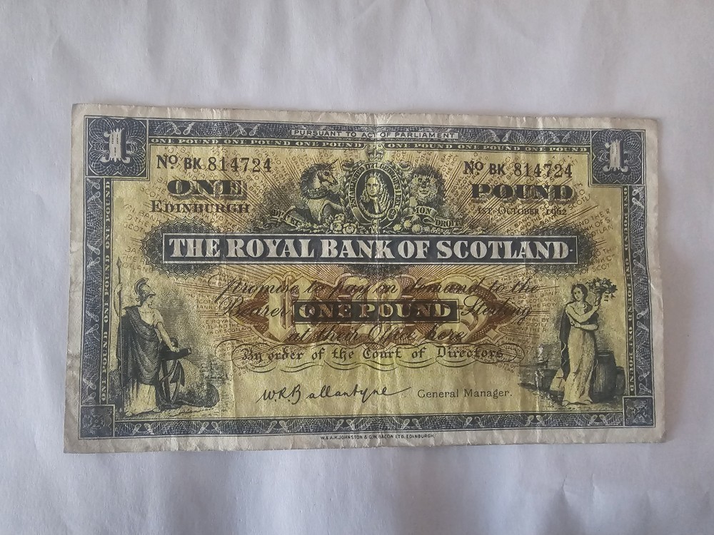 Scotia 1 pound 1962 rara,av.cont=15 lei,colet plata ramburs+plic