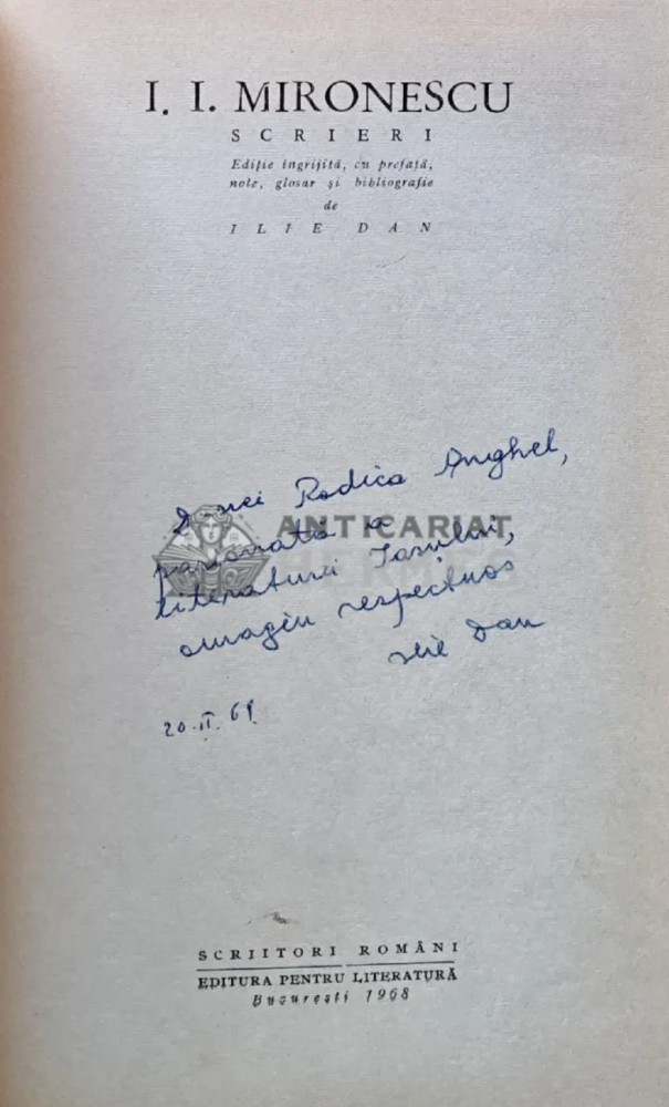 Scrieri (dedicatie Ilie Dan) - 1968 - I. I. Mironescu (AS232)
