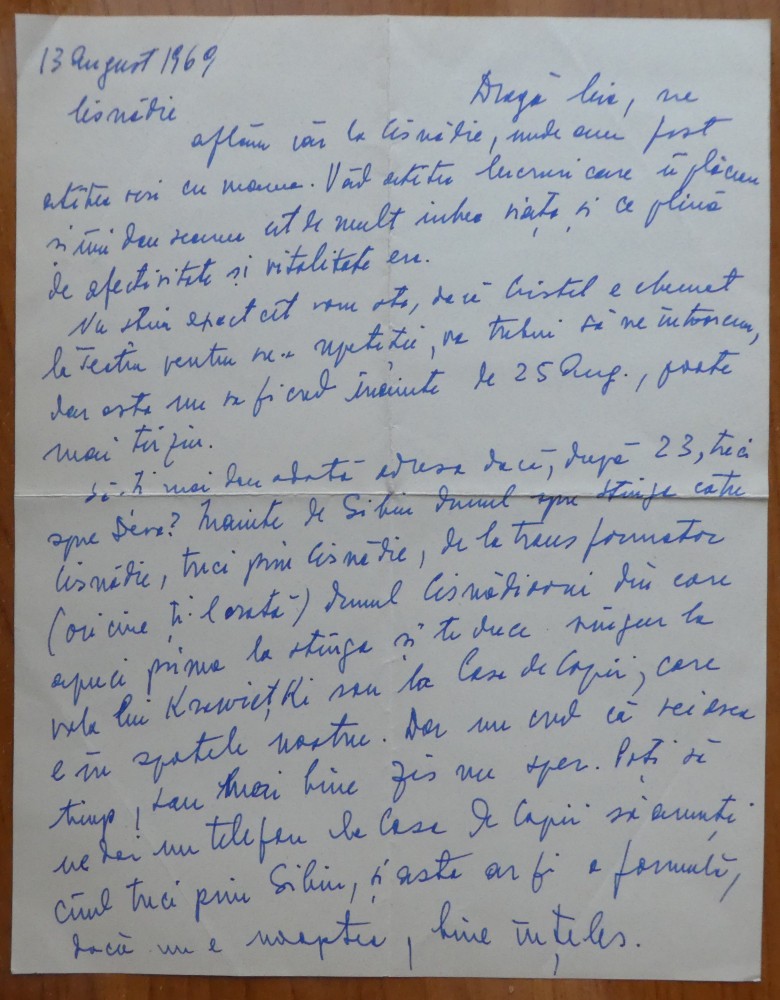 Scrisoare a scriitoarei Lucia Demetrius catre Mia Groza, 1969